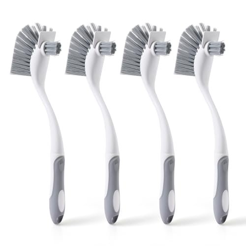 4-Pack Heavy-Duty Dish Scrub Brushes with Stiff Non-Scratch Bristles & Long Handle - Multi-Purpose Kitchen Cleaning Brushes for Pots, Pans, Bottles, Deep Cleaning