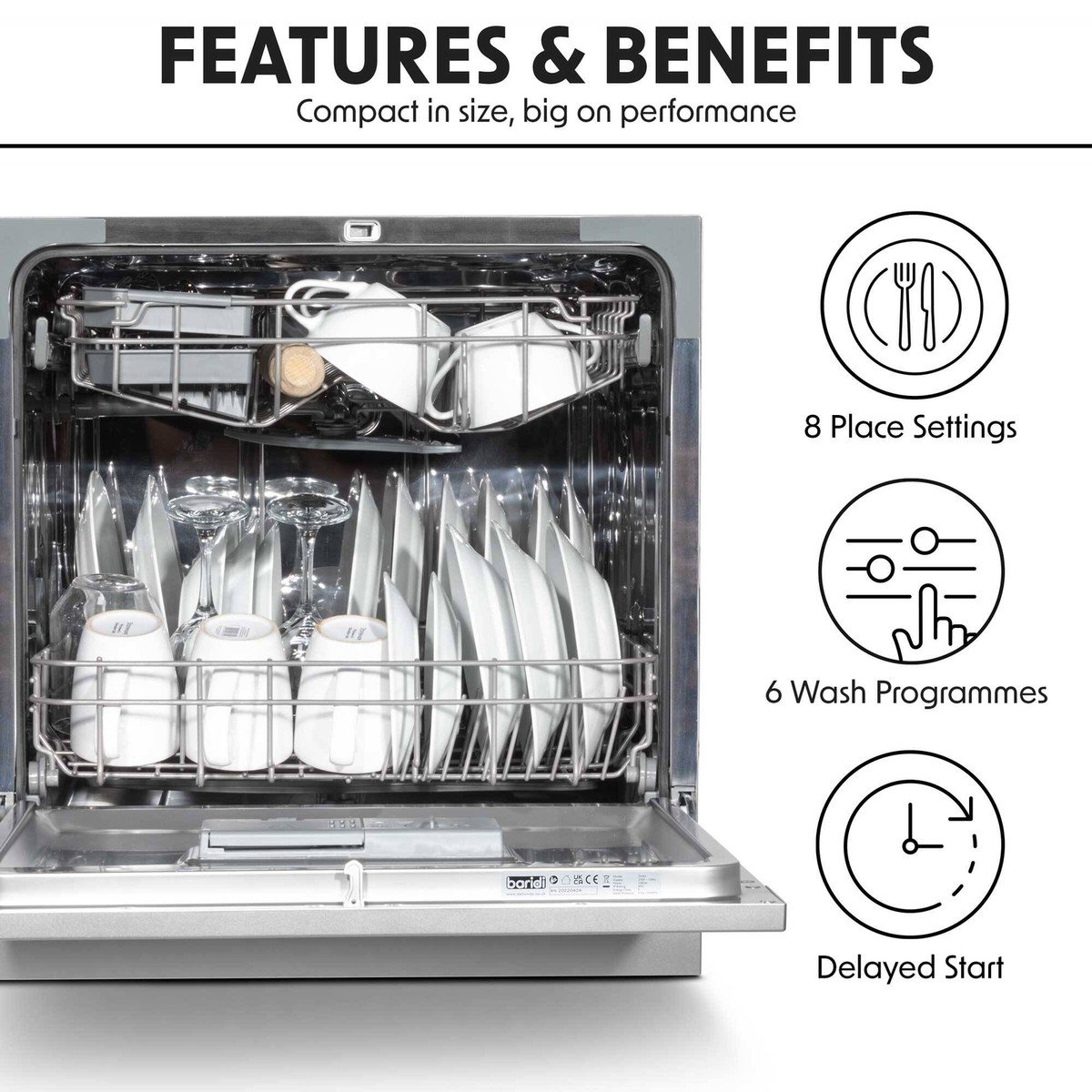 Countertop dishwashers have shorter wash cycles than full-size models. This reduces both water and energy use.