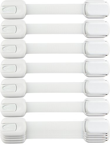 Child Safety Strap Locks (10 Pack) Baby Locks for Cabinets and Drawers, Toilet, Fridge & More. 3M Adhesive Pads. Easy Installation, No Drilling Required, White