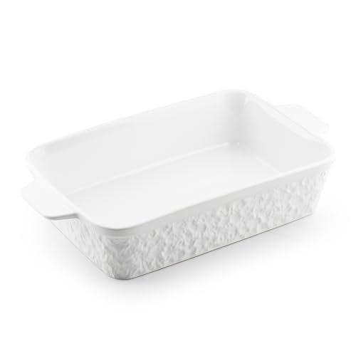 DOWAN Casserole Dish, 9x13 Ceramic Baking Dish, Large Lasagna Pan Deep for Oven, 4.2 Quarts Baking Pan with Handles, Oven Safe and Durable Bakeware for Lasagna, Home Decor, Wedding Gift, White