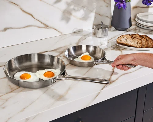 Choosing the right frying pan for omelettes means thinking about heat. Good heat conductivity helps the pan heat up quickly.