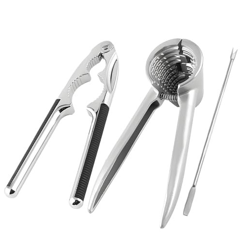 A heavy-duty nutcracker made of stainless steel is a smart choice for your kitchen. It helps crack all types of nuts like walnuts, pecans, almonds, and even seafood shells. The strong metal and non-slip handles make it easy and safe to use.