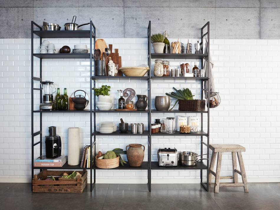 | Tall open shelves | Store more items in less floor space |