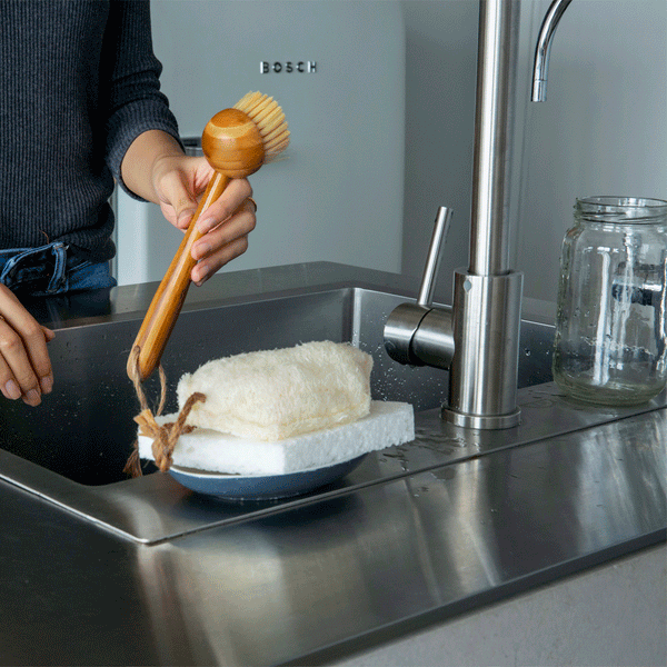 Rinse sponges and brushes with hot water after each use. This removes food bits and soap.