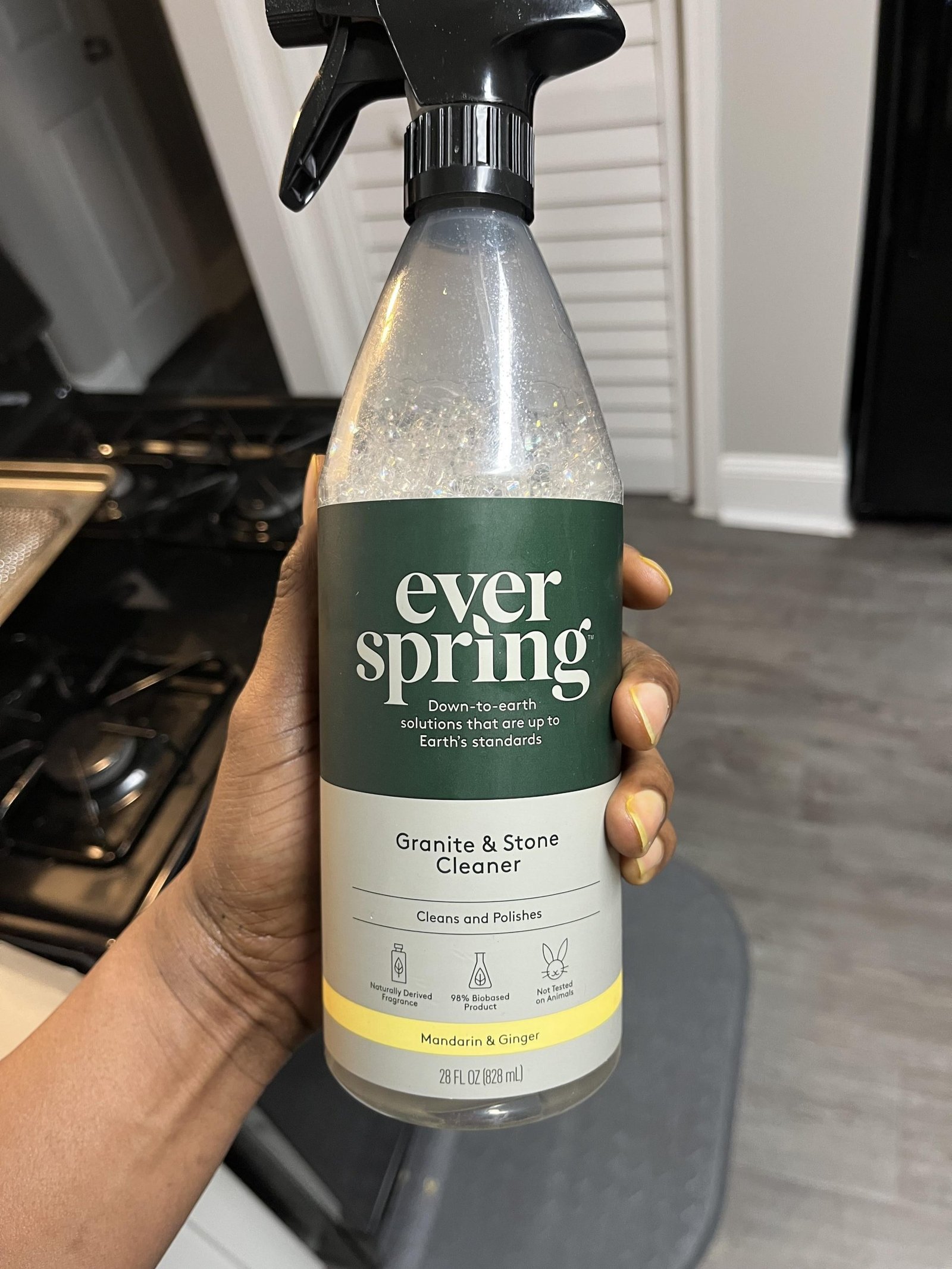 Using safe and effective cleaners protects your countertop’s surface. You will find natural cleaners, commercial products, and useful tools below.