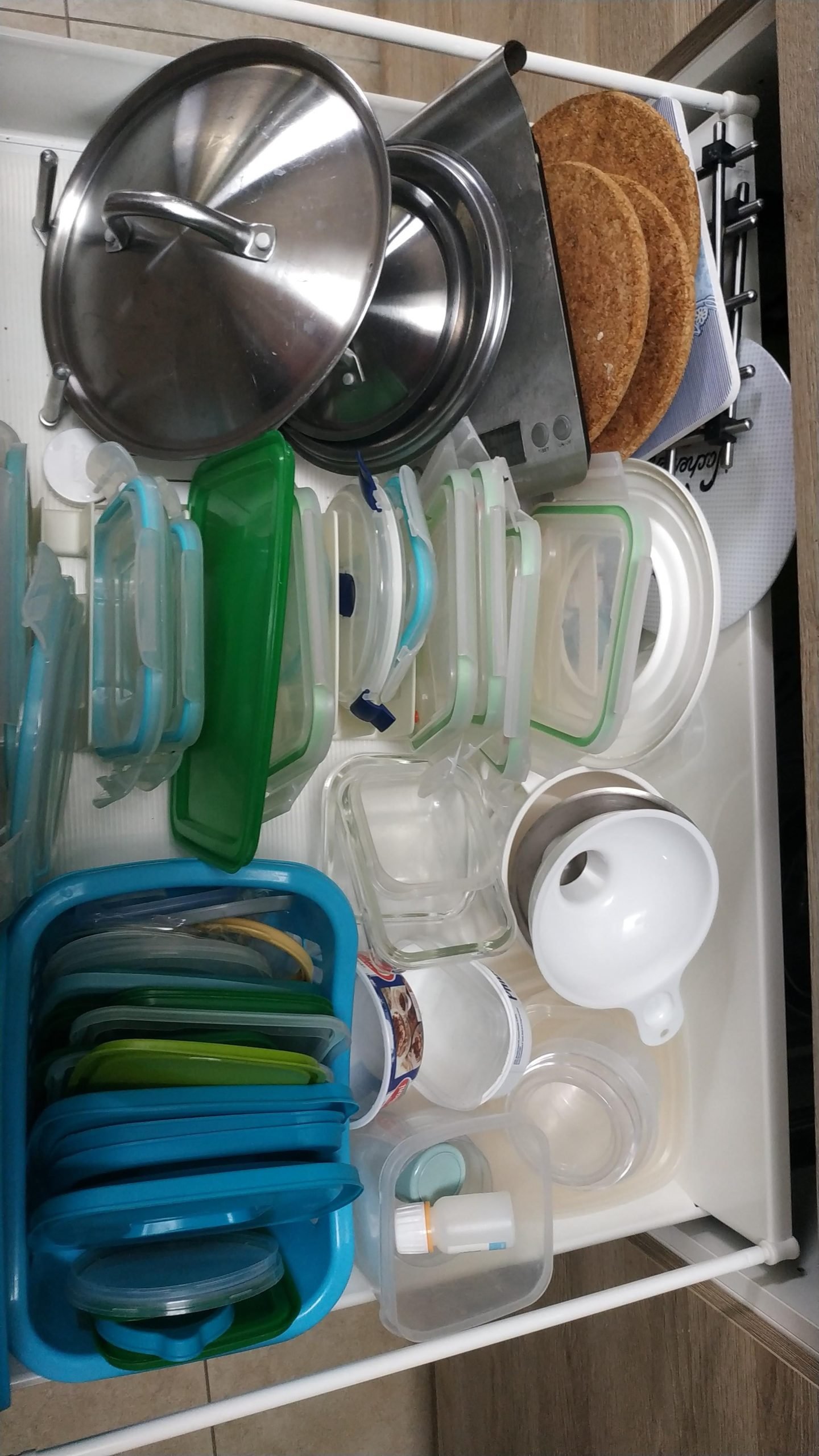 Drawers are great for storing lids flat. Use dividers or trays to separate lids by size or type.