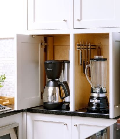 Storing small appliances can be tricky if space is limited. Using your cabinets and shelves wisely saves room.