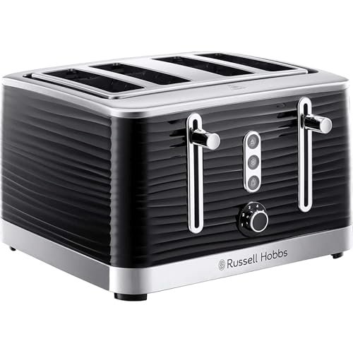 Russell Hobbs Inspire 4 Slice Toaster (Extra wide slots, High lift feature, 6 Browning levels, Frozen/Cancel/Reheat function with Blue LED illumination, 1800W, Black textured high gloss) 24381