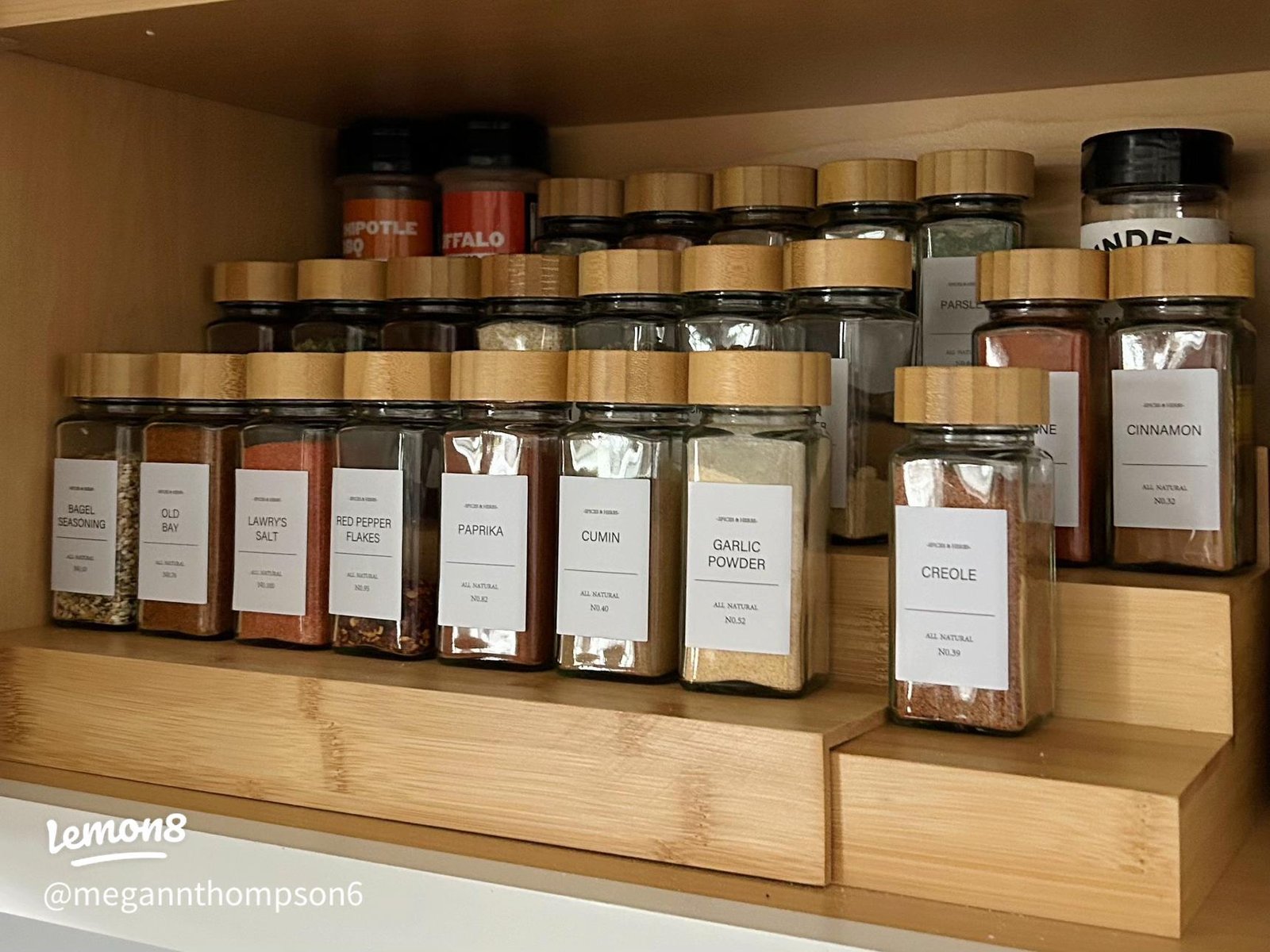 Placing spices by how often you use them also helps. Keep your most-used spices in front or at eye level.