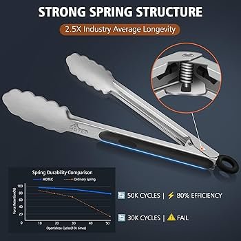 - Check for rust-resistant coatings on metal tongs