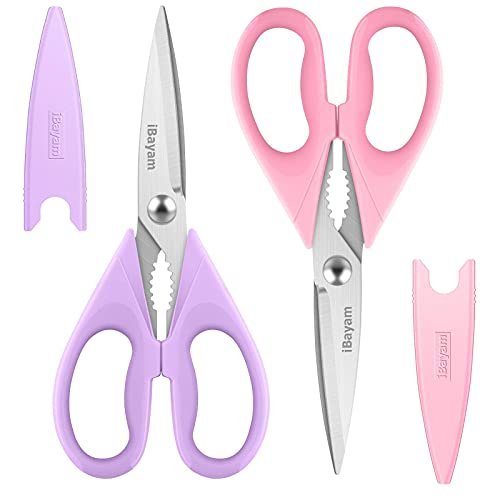 The iBayam Kitchen Scissors feature a robust stainless steel blade that provides excellent cutting power for a variety of kitchen tasks. Their all-purpose design allows users to effortlessly cut through meat, poultry, and even tough packaging materials, making food preparation faster and more efficient. The inclusion of a protective sheath ensures the blades stay sharp while preventing accidents during storage.