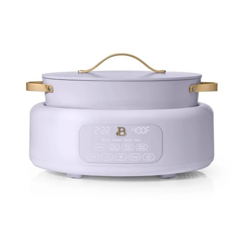 Beautiful 10-in-1 Electric Multi-Cooker, 6-QT Capacity, 7 Preset Functions, Saute, Slow Cook, Braise, Steam, Dishwasher Safe, Oven Safe, Durable Stainless Steel Handles (Lavender)