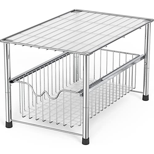 The 2 Tier Sliding Basket Drawer Organizer by Lxmons is ideal for homeowners or renters looking to maximize storage space in their kitchen, bathroom, or pantry areas. If you struggle with cluttered under-sink cabinets or need a reliable solution to keep your countertop items organized and easily accessible, this product is designed specifically for you. Its compact yet spacious design fits well in smaller spaces while providing efficient storage.